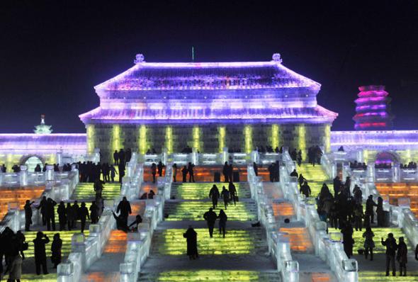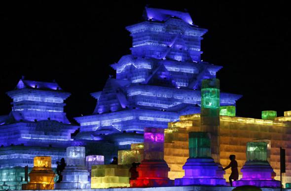 наш корреспондент (Malu1ko) передает.. В нескольких парках города можно найти массивные здания изо льда, нависшие над рекой Сунхуа, большие ледяные скульптуры в натуральную величину, ледяные горки, еду и напитки. Ночью включаются огни, и замерзшие зрители видят, как скульптуры подсвечиваются как изнутри, так и снаружи. Фестиваль в этом году открылся 5 января и продлится до февраля. Турист пришел посмотреть на ледяную скульптуру 26-го Международного фестиваля снега и льда в Харбине, провинция Хэйлунцзян, Китай, 3 января 2010 года. Рабочие делают скульптуры из снега перед фестивалем в Харбине 18 декабря 2009 года. Человек в костюме Микки Мауса позирует перед скульптурой из снега в парке Харбина 5 января 2010 года. Человек в костюме Микки Мауса позирует перед скульптурой из снега в парке Харбина 5 января 2010 года. Невеста позирует для фотографии после свадебной церемонии на 26-ом Международном фестивале снега и льда в Харбине, провинция Хэйлунцзян, Китай, 6 января 2010 года. Пары принимают участие в групповой свадебной церемонии перед изображением Пекинского Храма Небес из снега 6 января 2010 года. Свадьба была организована правительством, и в церемонии приняли участие 28 пар, на которой присутствовали представители местных органов самоуправления. Посетители 26-ого Международного фестиваля снега и льда позируют рядом с гигантскими скульптурами в Харбине 5 января 2010 года. Люди пришли посмотреть на ледяные скульптуры в парке Харбина ночью 3 января 2010 года. Ледяные скульптуры подсвечиваются изнутри на ежегодном фестивале снега и льда в северо-восточной провинции Китая Хэйлунцзян 5 января 2010 года. Сказочные замки, возвышающиеся пагоды и даже египетский сфинкс в ледяном обличии – все это можно увидеть в этом году на фестивале. Посетители выставки играют в ледяной скульптуре до открытия фестиваля в Харбине 18 декабря 2009 года. Большие и маленькие ледяные скульптуры освещены в парке Харбина на 26-ом международном фестивале снега и льда 5 января 2010 года. Люди пришли в ледяной Колизей на фестивале снега и льда в Харбине 3 января 2010 года. Мальчик идет по ледяной лестнице в Харбине, провинция Хэйлунцзян, 24 декабря 2009 года. Люди пришли посмотреть на ярко освещенную изнутри ледяную скульптуру в Харбине 24 декабря 2009 года. Посетители гуляют между зданиями изо льда на Международном фестивале снега и льда в Харбине 5 января 2010 года. Рабочие проходят мимо ледяной скульптуры на фестивале в Харбине 18 декабря 2009 года. Люди пришли на ледяную скульптуру в парке Харбина 24 декабря 2009 года. Женщина едет вниз с ледяной горки на фестивале в северо-восточной провинции Китая Хэйлунцзян 5 января 2010 года. Женщина ждет туристов, желающих сфотографироваться с ее песцом, в Харбине 3 января 2010 года. Рабочий чистит ледяную скульптуру в стиле Диснея перед открытием фестиваля снега и льда в Харбине 18 декабря 2009 года. Люди пришли посмотреть на высокие ледяные пагоды в Харбине, провинция Хэйлунцзян, 24 декабря 2009 года. Освещенные яркими разноцветными гирляндами деревья и скульптуры в парке Харбина 6 января 2010 года. Салют освещает небо, знаменуя открытие Международного фестиваля снега и льда в Харбине 5 января 2010 года. Заплыв "моржей", посвященный открытию Фестиваля |