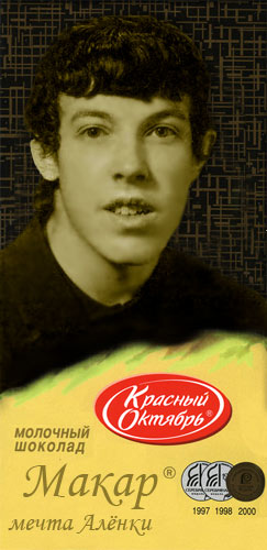 Есть такой молочный шоколад "Алёнка", его Красный Октябрь делает уже настолько давно, что, наверное, наши мамы не вспомнят, когда он появился. Одним словом, одна из живых и здравствующих и поныне икон советской эпохи. Предлагаю разнообразить ассортимент "Красного октября" (тем более, что они сами это первые начали, выпустив шоколад "Кузя, друг Алёнки") при помощи фотошопа и фантазии.