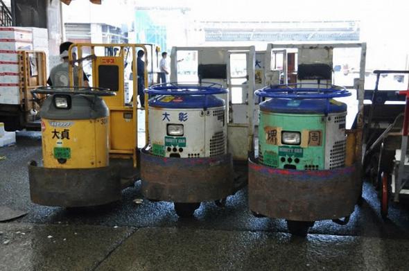 Двигатель повозки, вероятно, работает, как топка паровоза, сообщая этому устройству на колесах довольно приличную скорость. Японец стоит на повозке и рулит. Куда он вырулит в следующее мгновение, знает лишь он сам. Наверное, в скором времени возчиков с их допотопными тележками заменят какие-нибудь умные машины или роботы, однако от этого Цукидзи потеряет часть своего нынешнего обаяния.