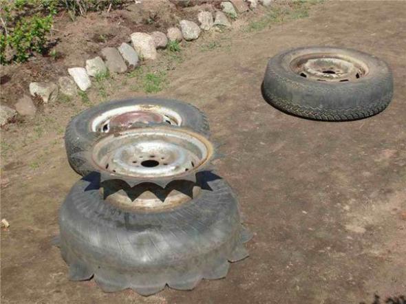 Утилизация старых покрышек - головная боль та еще.. сжигать их нельзя - ядовитые газы... их перетирают в порошок и добавляют понемногу в какие-то стройматериалы... всё это безумно дорого.. В Японии из мусора вообще (и из старых покрышек в частности) пресуют блоки и насыпают из них острова .. например, недавно был открыт аэропорт в токийском заливе..