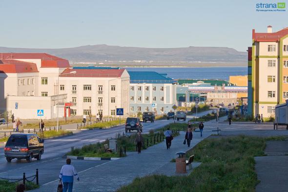 Вид города поражает с первой минуты. Было неожиданно увидеть такое обилие ярких красок на фоне тусклой и невыразительной тундры. Кто-то назвал Анадырь «город-лего» и на мой взгляд самое точное определение. Все дома, постройки и даже тротуары выкрашены в яркие и сочные цвета, один вид которых сразу поднимает настроение. Можно, конечно, по-разному относиться к Абрамовичу, но то, что он сделал с городом, заслуживает уважения. Мне приходилось видеть фото старого Анадыря без единой асфальтовой дороги и с серыми коробками развалившихся домов. И глядя, как преобразился город, понимаю, почему во многих учреждениях и даже квартирах висят портреты бывшего губернатора. (автор не пишет, что Абрамович, в бытность губернатором Чукотки, нагнал туда сотни строителей из Китая, Югославии, Турции.. даже из Канады..)