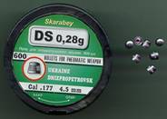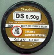 В городе Днепропетровске (Украина) фирмой «Скарабей» выпускаются пули для пневматики калибра 4,5 мм (.177) марки DS. Все свинцовые пули выпускаются в коробочках одного размера, с прорезью сбоку, перекрываемой вращающейся крышкой. Количество пуль в коробке: DS 0,28 – 600; DS 0,50 – 450; DS 0,62 – 400 шт. Кроме того, DS 0,28 выпускаются микроведерками по 2500 шт. Все пули довольно чистые, без грязи и почти без свинцовой пыли. Колпачковая пуля DS 0,28 г Очень качественно штампованный колпачок, без вмятин, корявых юбок и прочих радостей. Фактическая масса пули 0,28-0,295 г. На 10 м попадания в спичечный коробок из МР-512 при слабом освещении были стабильны. Матчевая пуля DS 0,50 г Очень качественно штампованная пуля с плоской, иногда чуть выпуклой головкой. Следы от нарезов на отстрелянной пуле видны как на юбке, так и на головной части. Фактическая масса пули 0,49-0,50 г. Высокая экспансивность, при достаточной энергии (ок. 5 Дж) из головной части вырывается столбик свинца, выдавленный материалом мишени, из-за малой толщины стенки между внутренней полостью и верхом головной части (ок. 0,8 мм). Круглоголовая пуля DS 0,62 г Очень качественно штампованная пуля со скругленной головкой. Следы от нарезов на отстрелянной пуле видны как на юбке, так и на головной части. Фактическая масса пули 0,62 г +/- 0,5 %. Экспансивность средняя, пенетрация высокая. Пули Скарабей DS 0,75 Днепропетровской фирмой «Скарабей» (Украина) освоен выпуск новой пули для пневматики калибра 4,5 мм (.177) марки DS – Скарабей DS 0,75 г номинальным весом 0,75 г (11,57 гр). На сегодняшний день это четвертый тип свинцовой пули (перед этим выпущены колпачок DS 0,28 г, матчевая DS 0,50 г и круглоголовая DS 0,62 г весом соответственно 0.28, 0.5 и 0.62 грамма. Все пули были взвешены 5 группами по 10 шт, 1 группой 40 шт и три пули по отдельности. Средняя масса пули 0,744+0,004 г. К сожалению, ни одна пуля не дотянула до номинала, но выборка не репрезентативная, т.к. пули из одной коробки. Как и предыдущие три типа, DS 0,75 выпускаются в коробочках одного размера, с прорезью сбоку, перекрываемой вращающейся крышкой. Количество пуль в коробке – 360 шт. На крышке – красная этикетка (DS 0,28 г – зеленая, DS 0,50 г – коричневая, DS 0,62 г- синяя). Пули довольно чистые, хотя в коробке присутствует немного свинцовой пыли. Качество исполнения неплохое, хотя мелкие вмятины попадаются и чуть-чуть гуляет ширина юбки (последнее субъективно). Массивная круглая голова (толщина верхней перемычки 2 мм) позволяет использовать пулю для плинкинга, но и для варминтинга тоже пойдет, хотя для мощных (300+ м/с) винтовок. Контрольный отстрел из тюнингованной МР-512 показал хорошую (для меня) точность (на 8 м группа 5 пуль 1,5 см, стрельба без упора). Следы от нарезов на отстрелянной пуле видны как на юбке, так и на головной части. В пластилиновом блоке пуля практически не деформируется. Цена в магазинах по сравнению с прочими «скарабеями» пока высока –14-15 гривен в зависимости от места приобретения ( около 2,8 долларов), но, конечно, меньше, чем КП 10,5. Сайт производителя: www.skarabey.dp.ua Имхо мое личное мнение, на даный момент пули упали в качестве при том конкретно использовал лично сам и в этомочень убидился, что до сех пор мне нраветса так это колпачки, реальеая дальность колпочков 10 метров... Как по мне люманы горазда лучче и качественней, хотя если присмотретса то полтора года назад качество люманов было гараздо лучче...