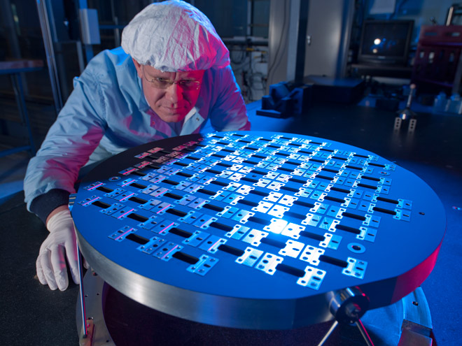 Там её сейчас тестируют, установив в крепление от телескопа (сборка крепления — на видео). А в полную силу камера заработает после установки на телескоп Виктора Бланко в горах Чили, в октябре 2012 года. Участники этого проекта собираются замерить скорость 300 млн галактик в Южном полушарии звёздного неба, чтобы проверить теорию о существовании тёмной материи. Проект Dark Energy Survey и эта 570-мегапиксельная камера уже обсуждались на Хабре, а сейчас предлагаем посмотреть фоторепортаж непосредственно с места строительства. Сборка камеры ведётся с 2008 года силами 120 астрономов, инженеров и физиков. Блок захвата изображения (imager) вмещает 74 отдельных сенсора совокупным разрешением 570 МП. На сегодняшний день в мире существует только одна камера с бóльшим разрешением: телескоп Pan-STARRS на 1400 МП, который ищет приближающиеся к Земле опасные астероиды. Но Dark Energy Camera не имеет себе равных по весу. Один только блок захвата изображения весит около 910 кг. Обоих «конкурентов» может с лёгкостью посрамить планируемый к строительству Large Synoptic Survey Telescope на 3200 МП, который тоже займётся поиском следов (эффектов) тёмной материи. Проблема только в том, что на его сооружение пока нет денег. На фотографии техник проверяет матрицу из 74 ПЗС-сенсоров. Двенадцать из этих сенсоров имеют меньшее разрешение (в сумме около 53 МП), они нужны для наведения и фокусировки телескопа. Остальные 62 сенсора (519 МП) непосредственно делают фотографии галактик. Все ПЗС сенсоры несерийные, а сделаны по спецзаказу в соответствии с необходимыми характеристиками — чтобы они были максимально чувствительны в инфракрасном диапазоне (в котором и предполагается снимать смещение удалённых галактик). Примерно такую картинку выдают все сенсоры вместе. Каждую ночь камера будет делать около 400 полноразмерных фотографий, каждая объёмом 1 ГБ. С подстанции в Чили их сразу будут отправлять для обработки и анализа в Национальный суперкомпьютерный центр в Иллинойсе (National Center for Supercomputer Applications in Illinois). Тяжеловесные детали камеры не будут висеть на самом телескопе. Для них инженеры соорудили отдельный 3,4-метровый «футляр». На фотографии внизу можно разглядеть блок с сенсорами (слева), основную оптическую систему фокусировки (справа) и две из шести пневмотрубок для наведения камеры. Телескоп Виктора Бланко расположен в одной из самых передовых обсерваторий южного полушария — Интерамериканской обсерватории Сьерро-Тололо в Чили. На схеме телескопа для масштаба изображены два человека (красный круг) и место установки Dark Energy Camera (зелёный круг). Детали самого тяжёлого в мире фотоаппарата внушают уважение. До соприкосновения с сенсорами свет проходит через четыре фильтра шириной 61 см. Они фильтруют диапазон проходящих волны, чтобы на сенсоры не попадало ничего лишнего. В инфракрасном диапазоне сенсоры будут делать, фактически, чёрно-белую картинку. Затем учёные-художники реалистично раскрасят её в разные цвета, используя научные методы (они специально рассчитывают, какой цвет логичнее всего подходит для волн определённой длины). На следующей фотографии показаны, пожалуй самые большие в мире и диафрагма и шторки затвора. Две стальные шторки спрятаны по периметру: они приходят в движение каждый раз, когда камера делает снимок. Двигаются шторки не слишком быстро, потому что для съёмки звёзд нужна длительная эксп
