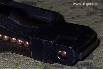 Итак, как театр начинается с вешалки, так знакомство с МР661-К начинается с упаковки. Пластиковый кейс ижевцы для “Дрозда” делать не стали. Однако картонная коробка, в которую он упакован сделана достаточно аккуратно, вполне нормально и надежно закрывается и даже имеет полиэтиленовую ручку для переноски. По сравнению с упаковкой МР654-К – большой шаг вперед. Общий вид пистолета. Расположенное ниже приспособление в комплект не входит. Теперь переходим к содержимому коробки. Вставляем в магазин 30 шариков. Процесс этот достаточно нудный, занимает 1-2 минуты. Особенно это обидно, когда результат этого труда вылетает за пять секунд. Ну, как говориться, любишь кататься - люби и катайся. Вставляем баллон. Как уже не раз писали, магазин может поставляться в двух исполнениях. Первое – это баллон прокалывается как в МР654-К, т.е. поджимным винтом. Второе – это баллон прокалывается при помощи рычага. Не могу сказать хорошо это или плохо, время покажет. Вставляем в пистолет 6 пальчиковых батареек (АА) и снаряженный магазин. Переводим предохранитель вниз – загорается красный светодиод. Батарейки вставлены. Магазин снаряжен. Все готово к стрельбе. Бутылки стоят и ждут недождутся. Одиночными стрелять неинтересно. Поэтому переключатель поставлен на положение 600выст/мин, а другой на максимальное количество выстрелов в очереди – 6. До бутылок метров 10. Не целясь, с бедра жму на гашетку. Зрелище впечатляющее. Описывать его нет смысла. Несколькими нажатиями на гашетку опустошается магазин. Баллон после такой стрельбы становиться очень холодным, даже покрывается конденсатом. Однако последняя очередь на мой взгляд была ненамного слабее первой. За время, пока снова зарядится магазин, баллон успевает нагреться. После отстрела второго магазина баллон уже так сильно не охлаждается. Почему я спусковой крючок назвал гашеткой. ИМХО так будет боле грамотно, ибо он не приводит в действие УСМ, по причине его отсутствия, а замыкает электрическую цепь. По поводу кучности могу сказать – достаточно высокая. Подробные данные можно увидеть на других сайтах. При измерении скорости при только что вставленном баллоне и полном магазине оказалось: Первый шарик – 150м/с. Второй 165м/с. Далее еще штук пять разброс 160-166 м/с. Больше я не мерял. Несколько позже к “Дрозду” была сделана насадка на ствол. Так называемый надульник. Внешне - как ПБС, но фактически это приспособление является удлинителем ствола. Некоторые владельцы МР654-К нечто подобное имеют. В качестве ствола использовался ствол от пистолета Crossman338, который я давно разобрал на запчасти. И без того неплохая мощность выстрела стала еще больше. Кучность на мой взгляд не изменилась. С надульником помереть скорость хронографом не было возможности. Но и так заметно, что скорость больше. Звук выстрела стал несколько тише. Пистолет и насадка на его ствол. Так же была заменена деталь под поз.35. Называется насадок. Теперь отверстие дула имеет не 11 мм как с родной деталью, а 9мм. Для еще больших понтов участок, имеющий диаметр 9мм выполнен с нарезами. На мой взгляд стало выглядеть лучше. Пистолет с замененным насадком (поз.35) Новый насадок имеет выходное отверстие 9мм. Вид надульника спереди. Итак, постараюсь перечислить его достоинства и недостатки. Достоинства: Приятный внешний вид (личное мнение). Отличная эргономика. Пистолет сиди
