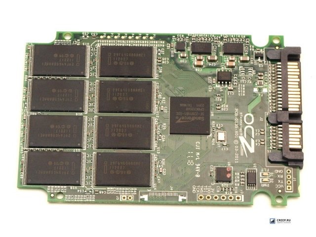 ![]() Идея поменять жесткий диск на флэш-память, вероятно, носилась в умах компьютерных гениев с того самого момента, как появилась флэш-память. Однако на ранних этапах внедрения этой технологии в качестве альтернативы традиционным жестким дискам выяснилось, что стоимость одного такого накопителя примерно равняется стоимости постройки одной пирамиды Хеопса, а потому никто просто не потянет покупку такого счастья. Ныне стоимость флэш-памяти снизилась, а потому SSD-накопители стали гораздо доступнее, хотя и недорогими их никак не назовешь. Впрочем, у SSD есть некоторые преимущества, которые для многих применений себя окупают, да и энтузиасты не прочь строить cвои компьютеры на основе SSD. Еще интереснее стало с появлением нового семейства контроллеров SandForce SF-2200, которое стало поддерживать высокоскоростной интерфейс SATA 6 Гбит/с. Именно на таком контроллере и основан SSD-накопитель OCZ Vertex 3. Линейка Vertex у OCZ на особом счету – эти накопители позиционируются в верхнем сегменте и обладают наибольшим быстродействием среди всей линейки SSD-носителей производства OCZ – линеек Agility, Onyx и Solid. Есть, правда, еще линейка Revo Drive, но она не предназначена для установки в ноутбуки, да и не во все ПК может быть установлена, а потому будем считать эти носители ультимативными и в рамках данного материала отбросим, потому что нас интересуют стандартные 2.5-дюймовые носители. Именно у Vertex 3 наиболее оптимизирована прошивка, в которой достигается наибольшая производительность при работе с файлами, особенно мелкими. Те же Agility отличаются несколько меньшей производительностью. Серия Vertex 3 может похвастать интерфейсом SATA 3, отсюда и название. А внешне накопитель повторяет дизайнерские тенденции, применяемые во всех накопителях OCZ. Форм-фактор OCZ Vertex 3 соответствует ноутбучному накопителю 2.5 дюйма, а потому может легко заменить накопитель ноутбука. Причем именно в ноутбуках любой SSD покажет себя с наилучшей стороны: обычно в ноутбуках не требуются накопители большого объема, потому SSD подходит хорошо. К тому же, специфика мобильного компьютера говорит о том, что его постоянно переносят, в том числе и во время работы, да и в транспорте работают, а уж в транспортном средстве вибрации и толчки постоянны, и именно к ним особенно восприимчивы жесткие диски. Нельзя не сказать и про энергопотребление SSD – оно ниже, чем у жесткого диска, ниже и нагрев, да и шума совсем нет. Поэтому надежность хранения данных на SSD существенно возрастает. Если разобрать накопитель, открутив четыре винта, можно обнаружить внутри небольшую плату с разъемом SATA и микросхемами. Собственно, плата – и есть сердце SSD, а корпус лишь выполняет защитную функцию. На плате распаяно 16 микросхем NAND-памяти производства Intel, имеющих маркировку 29F64G08AAME1 и объемом 8 Гб каждая. Итого общая емкость накопителя составляет 120 Гб. Микросхемы выполнены по технологическому процессу 25 нм – самая совершенная на сегодняшний день технология. Управляется SSD новейшим и популярным уже контроллером SandForce SF-2281 с максимальной скоростью передачи данных около 550 Мб/с. Словом, весьма совершенный накопитель. А теперь рассмотрим комплектацию. Беря в руки коробку, не ожидаешь увидеть внутри вообще какой-нибудь комплект, потому что коробка тонкая и относительно компактная. Зато вскрыв её, обнаруживаешь внутри вставку из картона с мягким на