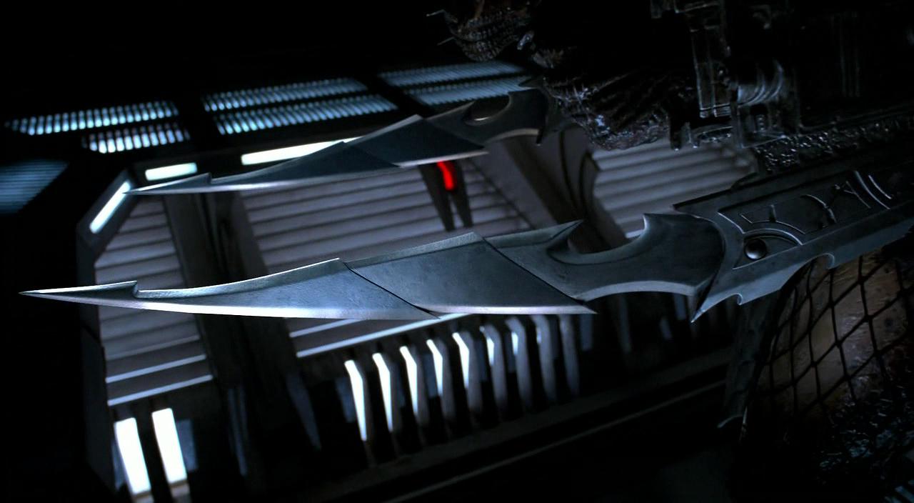Наручные лезвия входят в боекомплект каждого воина. Это самое слабое оружие из охотничьего арсенала, поэтому добыча трофея с помощью них считается наиболее престижной. Лезвия затачиваются самостоятельно. Обычно их носят на правой руке.