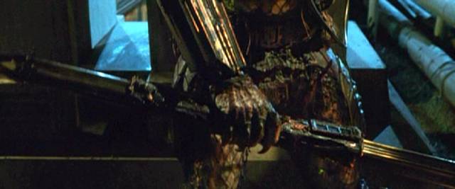 Самое мощное оружие Хищников — плазмомет, который обычно носят на плече. Он метает заряды плазмы на большую дальность и с высокой скорострельностью. Работает под управлением компьютера, размещенного в маске охотника.