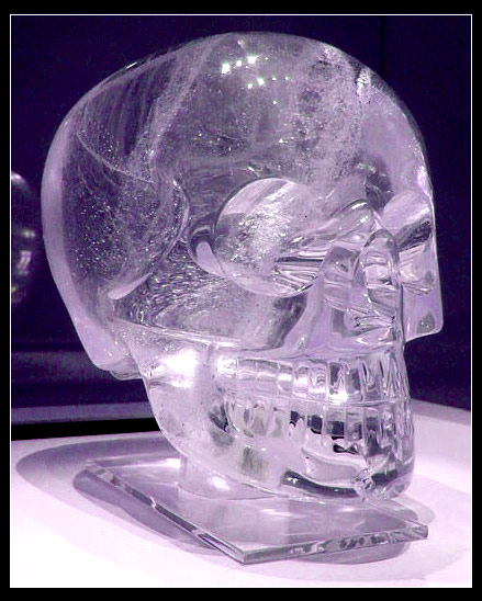фигня это все конечно, но красивая.... Хрустальные черепа — объекты дискуссионные и загадочные. Некоторые считают их древними артефактами, обладающими целебными и магическими свойствами. Другие отвергают эту точку зрения, считая черепа подделкой относительно недавнего времени. К согласию по поводу происхождения артефактов обе стороны до сих пор так и не пришли. Некоторые исследователи заявляют, что всего в мире существует 13 хрустальных черепов, однако в настоящее время известно месторасположение только пяти из них. Объекты являются моделями человеческих черепов, высеченными из прозрачных кристаллов кварца. Известные в настоящее время экземпляры разнятся по величине — от нескольких дюймов до размеров человеческой головы. Где появились черепа и для чего они использовались — загадка. Их происхождение принято связывать с культурами доколумбовой Южной Америки, в частности ацтеками и майя. Несомненно, самым удивительным и загадочным из всех хрустальных черепов является череп Митчелла-Хеджеса, обладающий зловещей, но привлекательной красотой, не присущей другим экземплярам. дальше