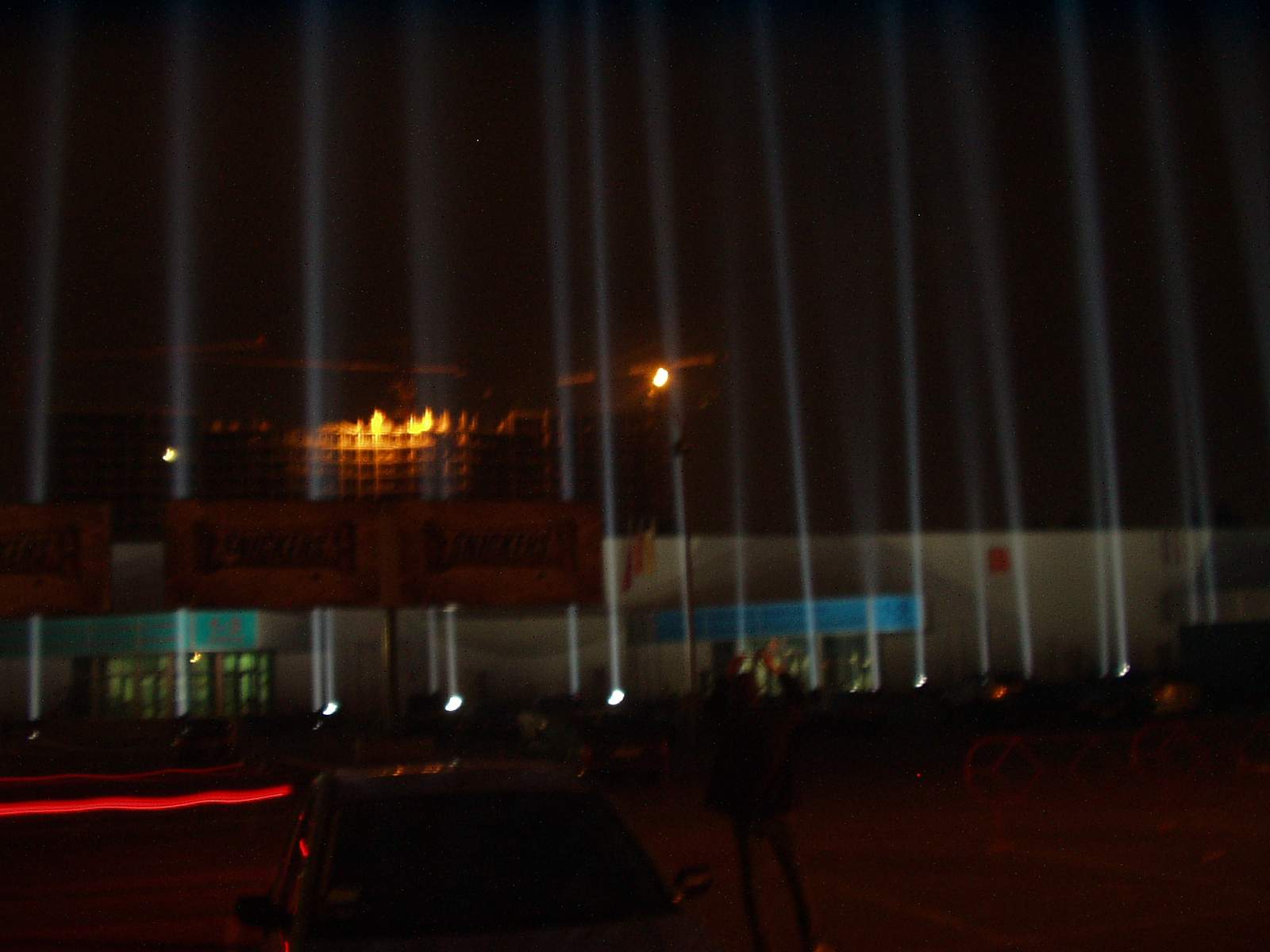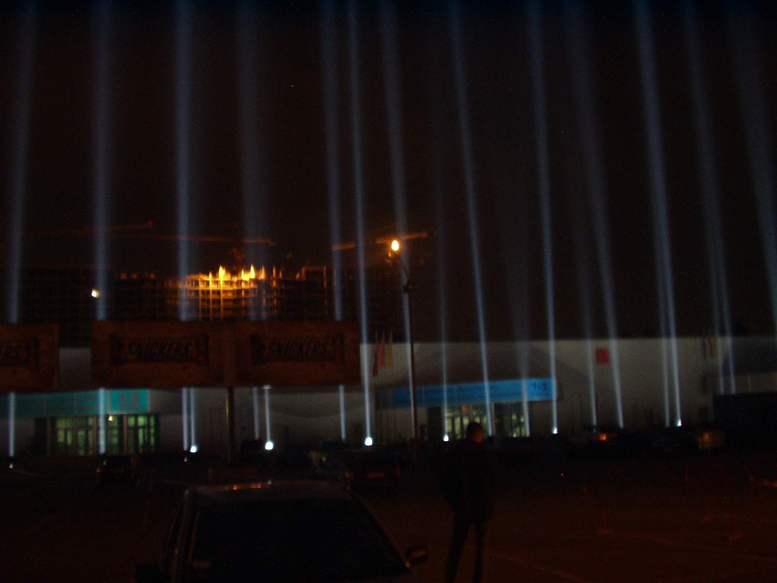 Самым интересным было то что вечером праздновали в первом павельйоне днюху какого-то мультимилионера, воте фото там де прожекторы светят в верх какраз было типа показателем дороги)