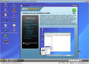 Система поддерживает синхронизацию данных с настольным ПК: поддерживается перетаскивание иконок, навигация по папкам, настройка меню, запуск приложений с рабочего стола. По нажатию F11 браузер разворачивается на весь экран и создаётся полная иллюзия обычной операционной системы на десктопе. На свой удалённый «личный винчестер» можно одним щелчком загрузить все документы, закладки, контакты, обои, даже музыкальные файлы с домашнего компьютера, все они открываются с помощью веб-приложений. В комплект входят текстовый редактор ajaxWrite (с поддержкой документов MS Word), редактор презентаций ajaxPresents и многие другие. И ОС, и все программы, разумеется, совершенно бесплатны.