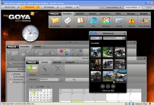 GOYA – это Flash WebOS, которая поразительно напоминает Windows Vista Aero. Интерфейс выполнен в сглаженных чёрных и полупрозрачных тонах. В остальном, стандартная WebOS. Под письма и файлы вы получите 512Мб места на удаленном винте. Работать можно с адресной книгой, календарем, медиаплеером, файловым менеджером и несколькими виджетами – все на любителя.