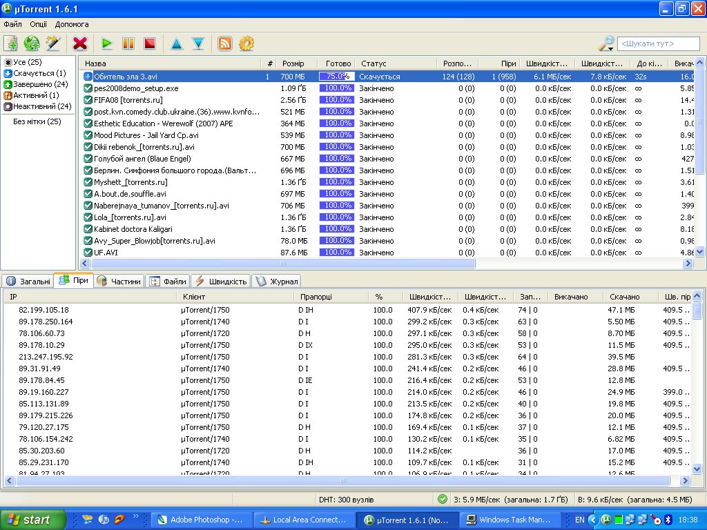 Скорость у чела качающего с торрента (не уа) доходила до 6,1м. Ниже скрины юзера сети - спецом заблочил UA-IX для большей достоверности.