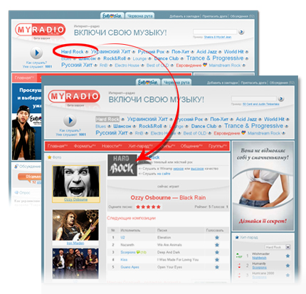 MyRadio — очень развитый радио-сервис, на котором полно украинской музыки