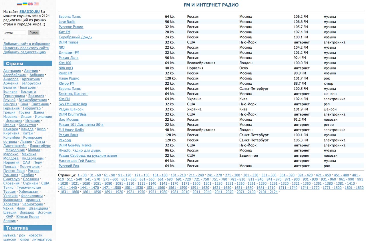 На сайте SRADIO.RU Вы можете слушать эфир 2124 радиостанций из разных стран и городов мира.