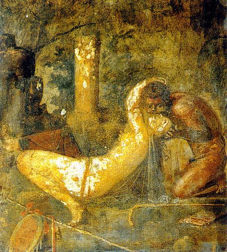 ![]() Атмосфера в Древнем Риме была абсолютно раскрепощенной и лишенной каких-либо сексуальных табу. Cвободному римскому обществу было разрешено почти все, что только могло приносить сексуальное удовольствие. По большей части это было связано с тем, что восточные и греческие тенденции постепенно выхолащивали основы суровой римской воинской культуры. Сексуальная жизнь в Древнем Риме до сих пор считается эталоном лояльности ко всем формам плотских наслаждений. Недаром из латинского языка до нас дошло так много сексуальных терминов — коитус, куннилингус, мастурбация, фелляция... Женщины в Древнем Риме Несколько иначе, чем греки, относились к своим женам римляне. Считалось, что грек женится, чтобы иметь детей и хозяйку в доме. Римлянин же искал верную подругу и спутницу жизни. Римлянка пользовалась уважением дома и в обществе: в ее присутствии нельзя было говорить грубости и вести себя непристойно. В своем доме римлянка была полновластной хозяйкой. Жена могла вкушать пищу за одним столом с мужем и его друзьями, и бывала в обществе. Что касается секса, то в Риме женщина уравнивалась с мужчиной в праве получать удовольствие от любви. Более того, считалось, что, не вкусив в полной мере эротического удовольствия, она никогда не родит здорового ребенка. С началом нашей эры в Риме расцвела эмансипация. Женщинам разрешалось наследовать состояния своих мужей, погибших на войнах. Они также получали деньги в случае развода, что стало настоящей революцией. Состоятельные дамы вслед за мужчинами отдались эротическому досугу. Оргия в бане с участием трех и пяти дам стала привычным мероприятием, что и запечатлевали в своих работах древнеримские художники. Самая любвеобильная римлянка Юлия, дочь императора Августа (39 до н.э. — 14 н.э.), была красива, обаятельна, умна и очень похотлива. Еще девочкой она любила показываться на публике полуобнаженной, едва прикрыв свои прелести. Затем у нее появились любовники. Сначала они исчислялись десятками, затем сотнями, затем их стало просто бесчисленное множество. Про нее говорили, что она развратила половину римской молодежи. Не угомонилась Юлия и с возрастом. Наоборот, она начала предлагать себя всем встречным на улицах Рима — невзирая на возраст, цвет кожи и внешний вид. Проституция и публичные дома Проституция в Древнем Риме приняла поистине колоссальный размах. С набеленными лицами и подведенными сажей глазами вели свое древнее ремесло римские проститутки. Они стояли повсюду — у стен Колизея, в театрах и храмах. Посещение женщин легкого поведения считалось у римлян весьма обычным явлением. Дешевые блудницы продавали быстрый секс в кварталах старого города. Жрицы любви более высокого ранга, поддерживаемые банщиками, действовали в римских термах. Как и в Древней Греции, римская проституция также имела свою классификацию: то или иное название указывало на специфику развратницы. Например, Alicariae или булочницы – девицы, что держались вблизи булочников и продавали лепёшки в форме мужских и женских половых органов. Diobolares — старые, изношенные проститутки, что требовали за свою любовь только два аса. Nani – маленькие девочки, которые начали заниматься проституцией еще с шестилетнего возраста. По мере расцвета Римской империи ряды представительниц древней профессии пополнялись за счет иностранных рабов. Су