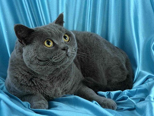 Внешний вид. Крупная мощная кошка с круглой широкой головой и полными щеками. Выраженные и округлые подушечки вибрисс придают выражению лица британца мягкость и "улыбчивость". Большие выразительные медные глаза взирают на этот мир с достоинством настоящего лорда. Шерсть у британцев короткая, очень плотная (ость и подшерсток одной длины), отстоящая от тела, упругая и плюшевая на ощупь.