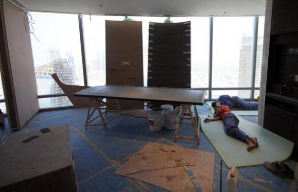 На 39 этаже идет отделка люксовых номеров отеля Армани (Armani Hotel).