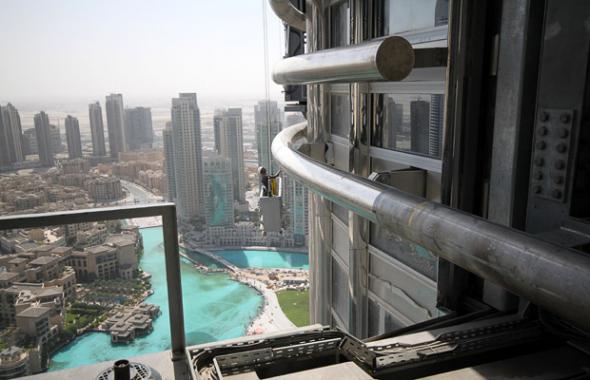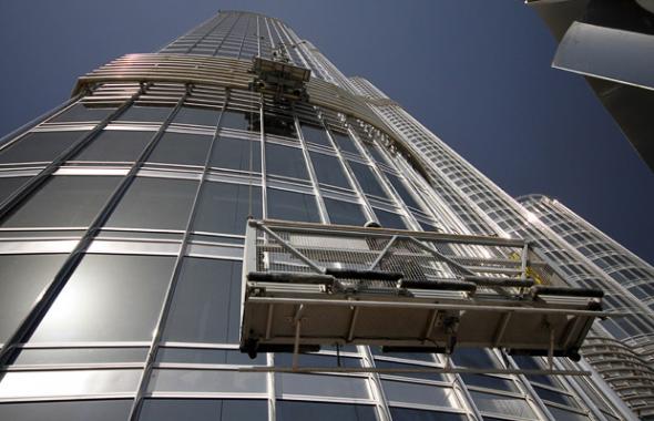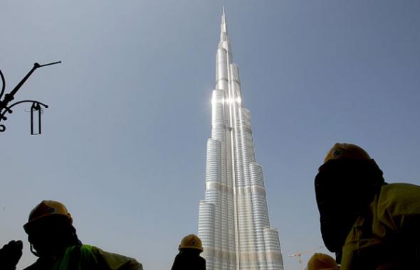 В Дубаи, где на этой неделе достиг пика кризис в сфере недвижимости, идет финальная отделка самого большого небоскреба в мире — Burj Dubai.