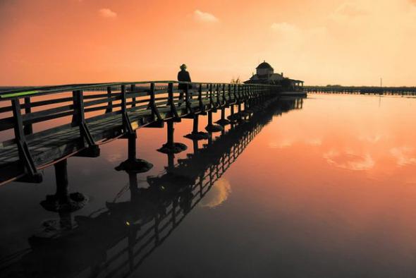 Мост Акаси-Кайкё в Японии соединяет город Кобе на острове Хонсю с городом Авадзи на острове Авадзи. Его строительство растянулось на десять лет, в ходе которых менялась не только конструкция, но и даже его назначение — вместо запланированного изначально железнодорожно-автомобильного, он оказался просто автомобильным. По своему типу — это классический висячий мост, со всеми характерными для него правильными геометрическими кривыми. К моменту открытия он был висячим мостом с самым большим расстоянием между опорами — 1991 м. В длинном ряду архитектурных сооружений мосты занимают совершенно особое место. Их задача компенсировать неудобства, возникающие из-за особенностей ландшафта, и уже одно это обусловливает их тесную связь с природой. Теоретически, всякое архитектурное сооружение должно вписываться в ландшафт, но на практике это редко бывает так наглядно, как в случае моста. Особенности ландшафта, компенсируемые мостом, также не случайны и не напрасны. Это либо река — а существование населенного пункта, особенно крупного, вдали от реки просто немыслимо,-либо естественные препятствия, служащие городу защитой от врагов. Искусство мостостроителя, тем самым, оказывается жизненно важным для жителей города, обеспечивая им не только эстетические условия существования, но и безопасность. Наконец, то же самое искусство создало условия для объединения разных городов, разместившихся поблизости друг от друга, но по разные стороны реки, урбанистическое единство. Когда-то и Лондон, и Будапешт представляли собой не один город, а несколько. Да и островному поселению Лютеции было бы трудно разрастись и превратиться в город Париж, если бы не пяток удачно построенных мостов. Остров Аруба. Некоторые природные образования наводят на мысль, что человек не столько изобрел мосты, сколько подсмотрел идею у природы. Для захватчиков, которые вздумали бы угрожать каталонскому городу Бесалу (Besalú), имелась естественная преграда в виде отвесных берегов реки Флувия. Еще во времена империи городские ворота располагались на мосту. В 1315 году мост перестроили, но он вполне отражает особенности римской архитектуры. Си-о-се Поль — один из трех знаменитых мостов персидского города Исфагана. Он был построен в 1602 году и получил вполне техническое название: мост тридцати трех арок, поскольку именно это и означает в переводе с фарси سی وسه پل (Sioseh = 33). Старейший деревянный мост Европы Каппельбрюкке (Kapellbrücke) был построен через реку Рёйс в 1333 году и до сих пор представляет собой одну из главных достопримечательностей швейцарского города Люцерна. Бесхитростные деревянные сооружения, поддерживаемые перетянутым с одного берега на другой веревочным канатом, довольно недолговечны: почти каждый год их сносит паводок, но старом месте быстро появляется новое. Тауэрский мост в Лондоне стал символом города почти в такой же степени, как Эйфелева башня — символом Парижа. И построен он почти одновременно с ней, в 1894 году. Разводной мост в центре Лондона расположен над рекой Темзой, неподалеку от лондонского Тауэра. Спроектированный Хорасом Джонсом и Вольфом Барри, он стал одним из самых главных ориентиров в столице Великобритании. Длина моста составляет 244 метра с двумя поставленными на устои башнями высотой 65 метров. Центральный пролет между башнями, длиной 61 метров, 
