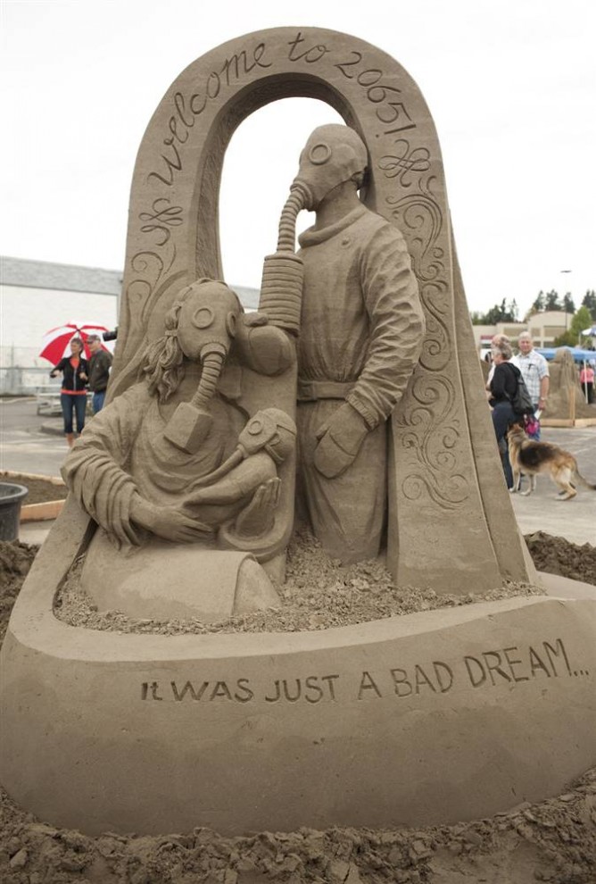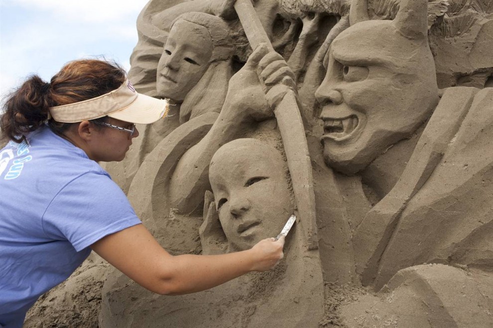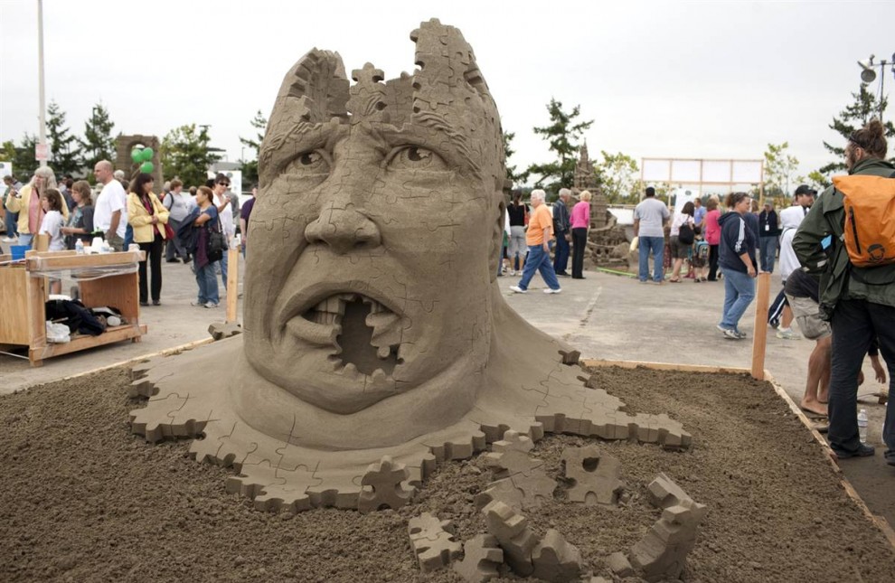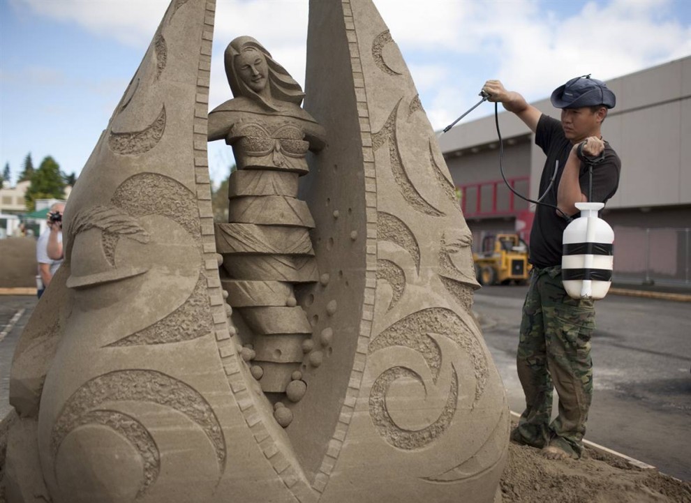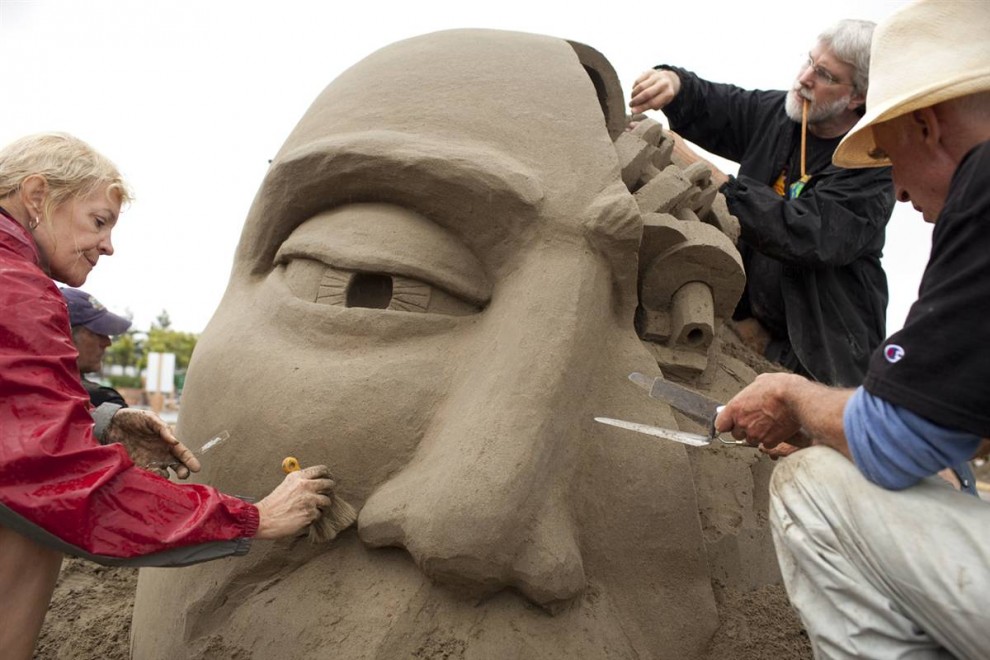На Чемпионате мира по созданию скульптур из песка, который проводился в штате Вашингтон с 8 сентября по 3 октября, художники со всего мира боролись за титул в трех категориях: соло, дуэт и команда.