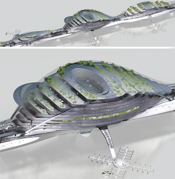 А органическая облицовка этой мега-структуры выступит в качестве «холста» для различных медиа и видео материалов. Масштабная конструкция также предполагает ультра-современные базовые причалы и удобный доступ к водным такси, яхтам и круизным судам.