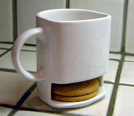 Эта симпатичная чашка не только напоит Вас чаем или кофе, но и прибережет пару печенек на черный день. К сожалению, это не реальная чашка, а всего лишь концепт Эти чашки используются в сети кафе Starbucks. Узор на них имитирует вязку свитера Названа в честь исследовательского центра ядерной энергетики, расположенного во Франции. Названа в честь одноименного напитка, использующего пропорцию 2/3 кофе + 1/3 молока Внешняя стенка чашки окрашена специальными термочувствительными чернилами, которые реагируют на тепло горячей воды и «заставляют» айсберг таять. Эта оригинальная чашка удобно сидит в руке, как бы Вы ее не держали – за одну из ручек или просто в обхват. С помощью этой чашки можно попить кофе не только в спокойной обстановке, сидя за столом, но и на ходу, т.к. блюдце легко трансформируется в специальную крышку с отверстием для питья. Эта чудо-чашка помогает достичь идеальной консистенции чая и кофе с помощью цветовой таблицы, нарисованной на внутренней стороне. Шкала начинается с «экстра-молочного» и заканчивается «экстра-крепким». Слоган «убей время с чашечкой кофе» Вам надоело рассказывать людям, что и как Вы хотите выпить сегодня? Просто прокрутите кольца и выберите желаемый вариант, тогда секретарь точно не ошибется! На первый взгляд это обычная чашка с надписью «Выкл». Однако, как только вы наполняете ее горячим содержимым, чашка «включается». Чашки, которые соединяются в ряд и упрощают процесс наливания кипятка. Выглядящая на первый взгляд как помятый пластиковый стаканчик, эта чашка сделана из фарфора. Когда Вы запрокидываете голову, чтоб выпить содержимое своей чашки, на ваших друзей/коллег/родственников смотрит прикольный смайлик Теперь каждый может «похронить» свой использованный чайный пакетик с глаз долой, а не выкладывать его на стол. Не обошлось и без стандартной для этого дела надписи R.I.P. (покойся с миром) Эта чашка разработана таким образом, чтоб содержимое чашки как можно дольше оставалось горячим, а Ваши пальцы – холодными. Чашка полая в местах «захвата». Аналогичная система в блюдце, т.к. оно может быть использовано, как крышка для заваривания чая. слизывает подтеки кофе или чая с Вашей чашки Надпись на блюдце можно правильно прочитать лишь в отражении стальной чашки Она никогда не бывает наполовину полной Овальная форма этой чашки приближает центр тяжести ближе к руке, делая тем самым питье более комфортным, чем из традиционной чашки.