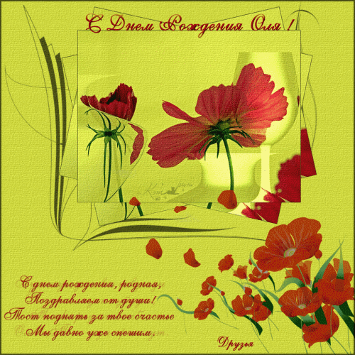 ![]() Дорогая наша Олечка! С праздником тебя! Любви тебе и счастья в семье! Здоровья тебе, здоровья Даничке, здоровья мужу. Пусть всё у вас будет хорошо! |