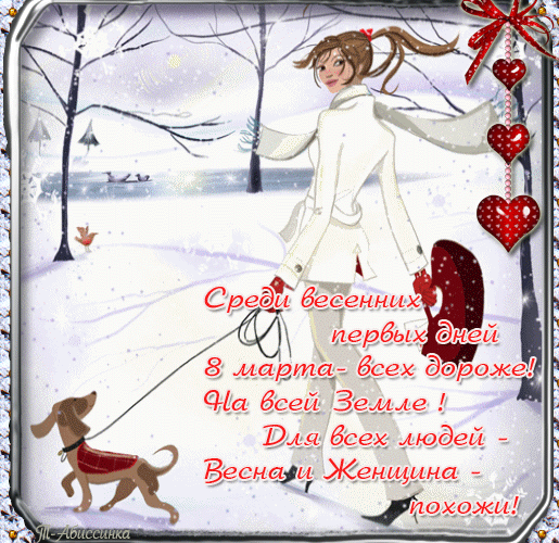 ![]() 8 Марта - день торжественный, День радости и красоты. На всей земле он дарит женщинам Свои улыбки и цветы. С днем весенним, не морозным, С днем веселым и мимозным, С днем безоблачным и снежным, С днем взволнованным и нежным, С днем просторным и сюрпризным Нашим славным женским днем! ЛЮБВИ ВАМ!!! |