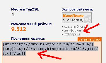 Тыкаешь на цифры рейтинга Попадаешь на страницу где выбираешь "Для форума", копируешь и вставляешь код в пост. Имеешь кнопку: