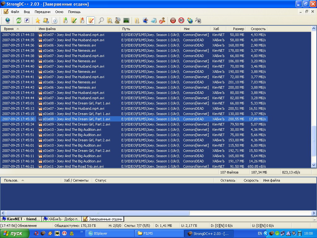у мну рекорд,я раздавал со скоростью 14.85 мб/сек =)