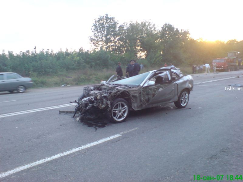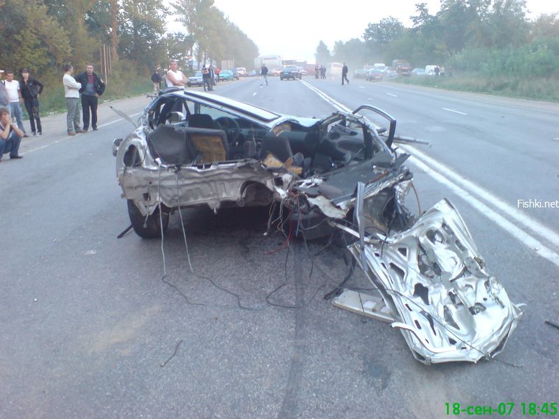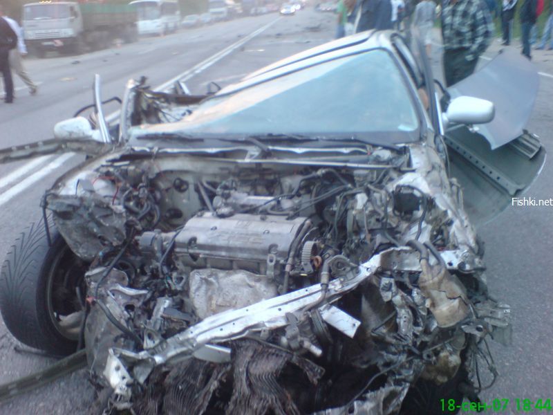 Житель Украины купил себе подержанную Хонду. Сфотографировал и добавил фотку в свой блог. Через несколько дней он попал в аварию, к великому счастью без последствий. Текст свидетеля аварии: «Авария произошла 18.09.07 под Тернополем. На момент моего присутствия водитель Хонды оставался жив. Вся дорога, которая имеет 4 полосы была перекрыта, двигались только встречные, и то только по обочине. Обломки Хонды были расбросаны на протяжении 200 м. и по всей ширине дороги».