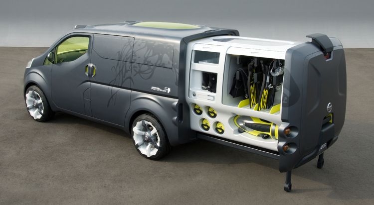 Nissan NV200 был разработан совместными усилиями инженеров из японского и английского филиалов с особой целью, а именно удовлетворением нужд морского биолога, доктора Алекса Мастарда. Размеры минивэна составляют 2820 мм в длину и 1820 мм в высоту. Nissan использует это пространство для запатентованного движущегося грузового отсека, который выдвигается сзади наружу. Фургон содержит несколько грузовых отсеков, которые легко доступны в стационарном состоянии.