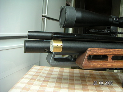 Таким образом, в конце концов, вышел интегрированный модератор, ровно по длину резервуара. Глушит конечно не идеально, но очень даже прилично, во всяком случае звук моего Эдгана не намного тише. Диаметр его 16 мм по всей длине ствола, т.е. всего на 1 мм больше диаметра родного ствола. Все перегородки симметричные относительно оси ствола. Ствол (модератор) в переднем хомуте легко опирается на проставочное резиновое кольцо, в заднем хомуте вывешен свободно. Резервуара не касается (остался небольшой ок.0,5 мм зазор)