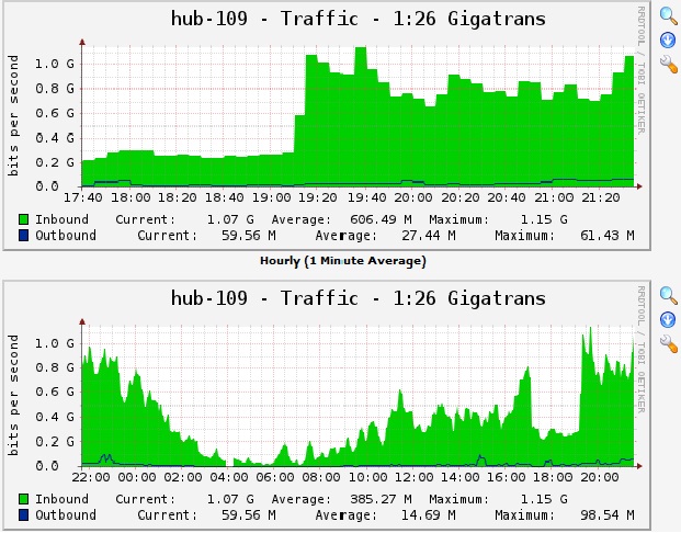 Регулярно случается такая хрень, что невозможно смотреть нормально ютуб (приходится ставить на паузу и доооооолго ждать пока закачает полностью) и онлайн-трасляции (типа Owned.tv). Я так понимаю это связанно с нагрузкой на каналы Киевнета, раньше (года 2-3 назад) график её нагрузки можно было увидеть у них на сайте, щяс - жопа. Что можете сказать или посоветовать по этому поводу?