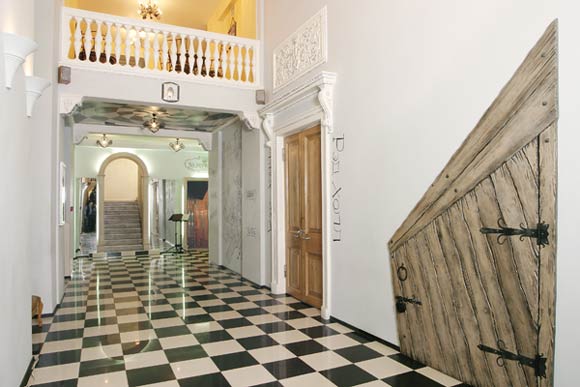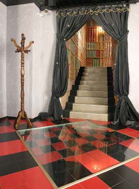 «Сказочный» дизайн внутренних интерьеров кинотеатра создан по мотивам произведений Льюиса Кэрролла «Алиса в стране Чудес» и «Алиса в Зазеркалье». Поднявшись по лестнице в кофейню «Страна Чудес», можно провести время за «сумасшедшим чаепитием». В центре кофейни - колонны-манускрипты с милыми английскими стишками из «Алисы». ![]() А с балкона открывается вид на «шахматную доску» главного фойе. Спустившись по крутой лестнице-стеллажу из бесконечный книг, создающих иллюзию свободного падения, можно оказаться в ресторане - «Зазеркалье». На стенах - разноцветные картины с изображением обитателей «Зазеркалья». ЗЫ: хачу там пабывать) |