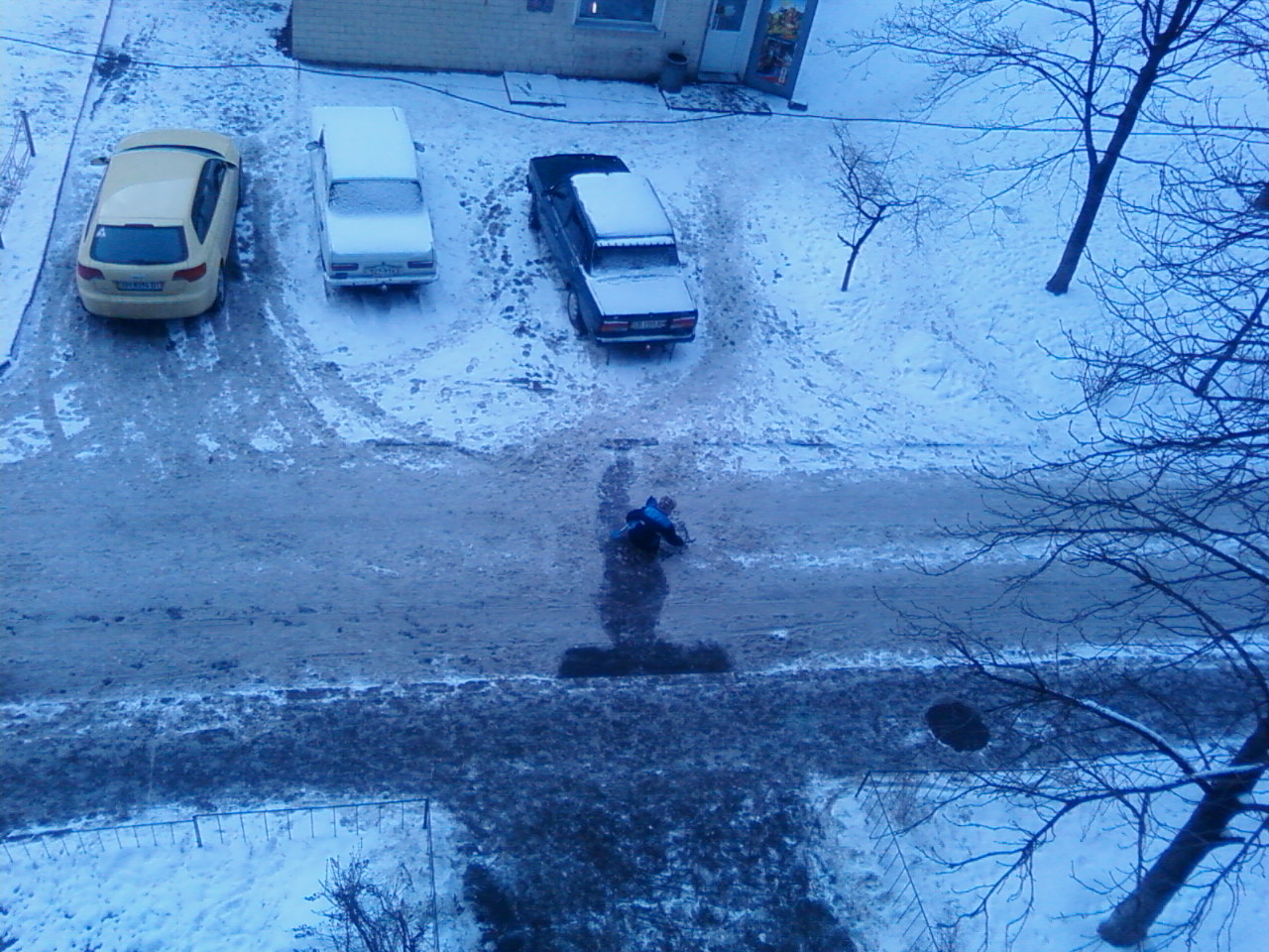 Вышел покурить на балкон и наблюдию такую катрину, решил сначало опшлить как всегда, но, присмотревшись, увидел что это ребёнок лет 5-6... Может всётаки у нас есть будущее? Дамы и Господа, чтобы ни у кого не создалось ложного впечатления.... под этим снегом нет ЛЬДА. там "ЧИСТЫЙ" асфальт. Последний раз редактировалось Allex...; 29.12.2008 в 15:40. |