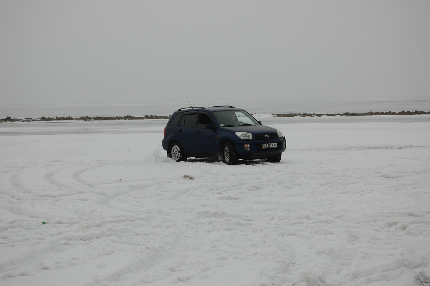 жалко что было много рыхлого снега, и машина не сильно скользила, но удовольствия было.