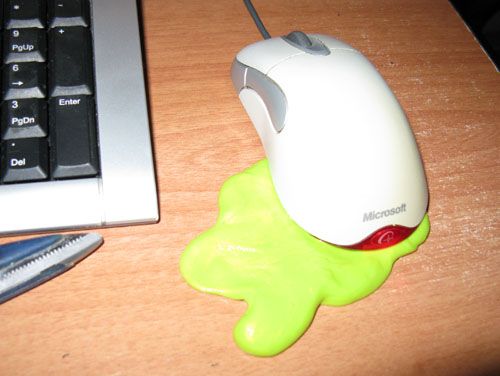 Handgum - это не лизун и не пластилин, это их дальний потомок: хэндгам может тянуться, рваться, капать, течь и даже прыгать. (а некоторые даже светится и менять цвет!) Штука очень приятная наощупь, незаменимая вещь для тех, кто любит что-то крутить в руках, грызть ручки, ногти... и для тех кто ломает все подряд во время разговора по телефону. Оф. сайт сообщает, что она совсем не пачкается, не оставляет следов и не токсична.