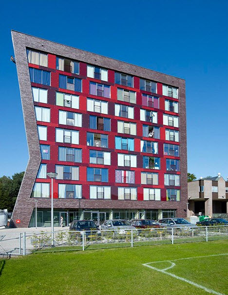 Истории известно немало случаев, когда студенты использовали собственные, да и чужие общежития в качестве скалодрома. Забраться к своей девушке в обход вахтера, проникнуть на третий этаж после того, как закроют все двери… Все эти подвиги теперь можно совершать легально – в новом студенческом общежитии, построенном в Нидерландах. Строители этого здания сделали из одной его стены сплошной скалодром. И теперь студенты могут официально лазить по общежитию. Лишь бы была страховка – в альпинистском и медицинском смысле этого слова.