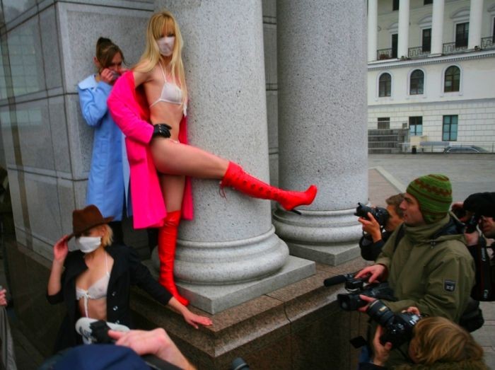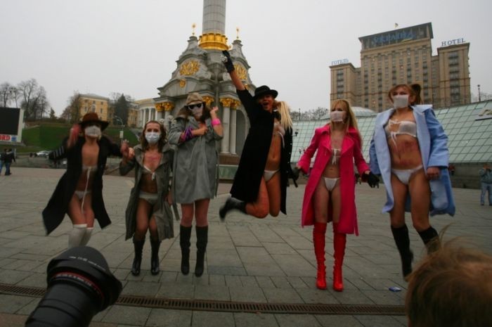 ![]() 10 ноября 2009года, на Майдане, украинские девченки выступили против эпидемии свиного гриппа.