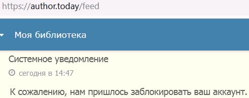Может быть и может, но я не выдержал... Копирую отсюда: author точка today/work/87898 Три статьи подряд удалены: "Вчера: Сегодня: " Обвинения - лживые. Выдуманные. Не соответствующие действительности. Никаких нарушений с моей стороны не было. Просто г0вн0м0дерат0раты на author точка today - г0вн0. Так что плюнул на author точка today с его г0вн0м0дерат0рами и перестал на него заходить. Посоветуйте другой литпортал, если кто-то знает... |