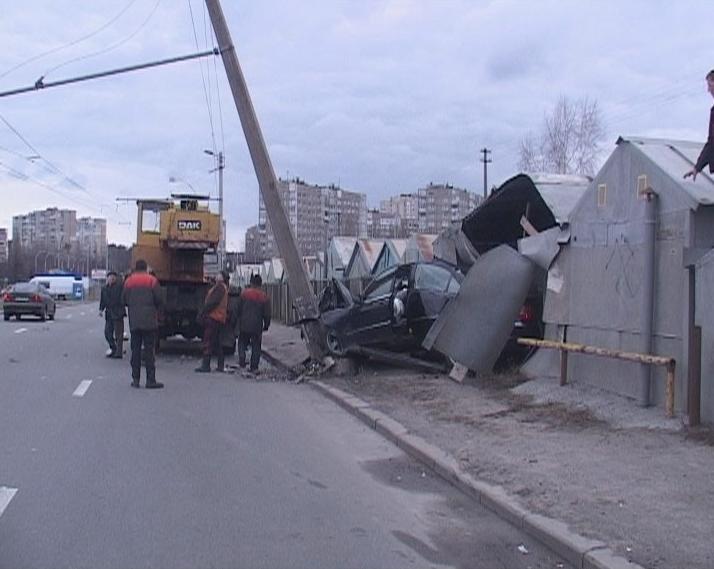 В субботу, 9 апреля, вечером на улице Гречко Mercedes врезался в один из гаражей, расположенных возле дороги.