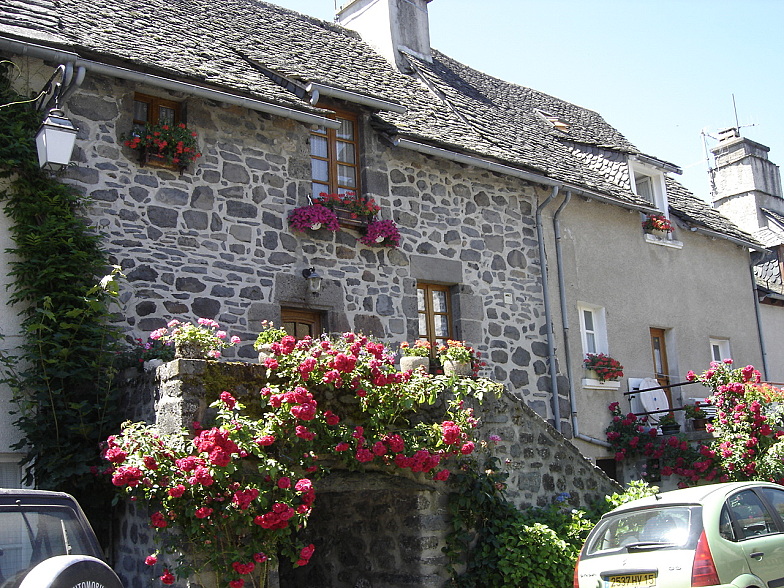 Все дома под черепицей из слоистого камня, а главный строительный материал там вулканическая пемза, черный камень. И все увито-усыпано цветами - розы, герани, глицинии...