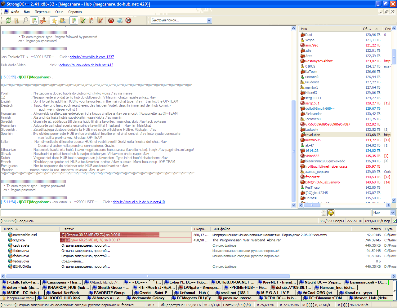| Мировые (российские) хабы - список русскоязычных хабов DC++ | Strem | О хабах | 25 | 27.11.2018 22:30 |