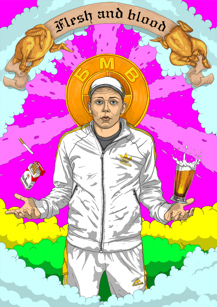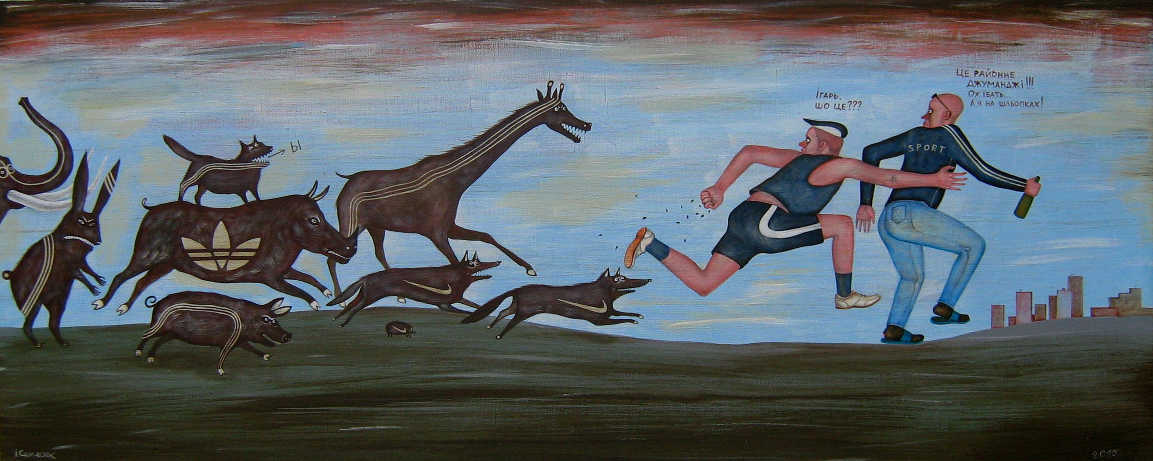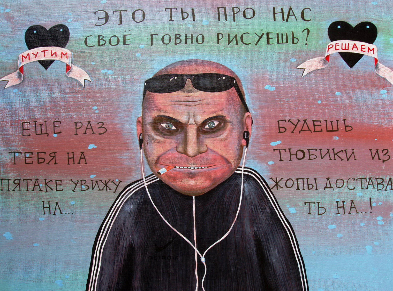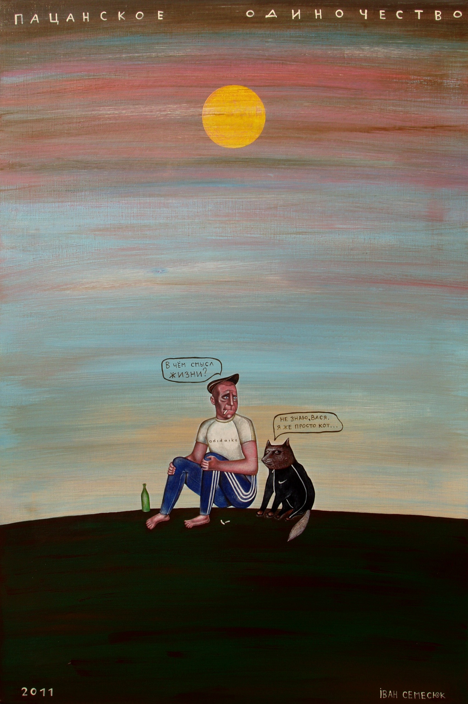 ![]() Аннотация с выставки: Семесюк - первый художник - “жлобист”. Пытаясь исследовать характерное для украинского общества явление “жлобство”, Иван создает яркие полотна в поп-артовой эстетике, и герои его творений - это люди из украинского социального дна, или просто люди с низкой культурой. Художник добавляет к визуальным образам тексты, которые вместе вызывают у зрителя позитивно - юмористическое настроение. Главной разделительной полосой, которая проходить сквозь человеческие сердца есть борьба между богом и дьяволом, добром и злом, светом и тьмой. ![]() Последний раз редактировалось +FAN; 15.10.2012 в 03:33. |