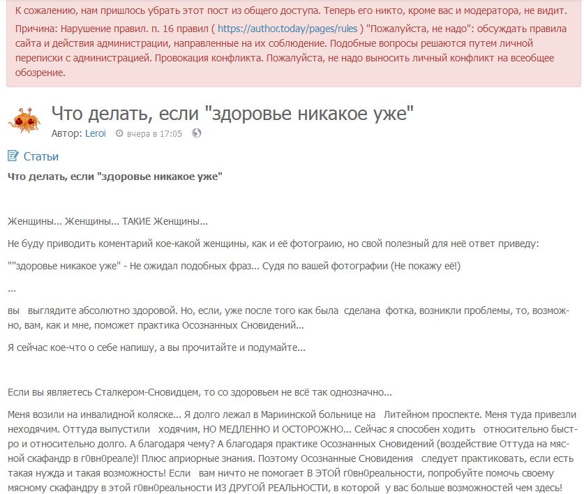 Так что плюнул на author точка today с его г0вн0м0дерат0рами и перестал на него заходить.