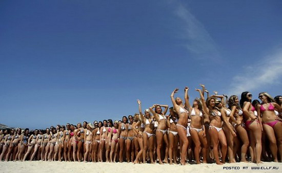 На австралийском пляже Бондай (Bondi Beach) 1,010 девушек установили новый мировой рекорд на самое большое количество девушек в бикини на одной фотографии. Акция была организована журналом Cosmopolitan.