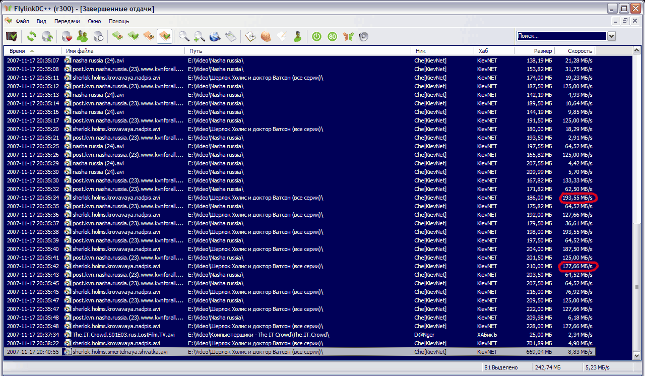 у мну рекорд,я раздавал со скоростью 14.85 мб/сек =)