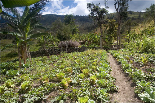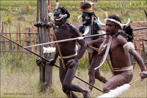 Племена Дани живут большими семьями общим двором по 30-50 человек. Женская половина вместе с кухней и свинарником, но отдельно от мужского дома, куда нас не пустили. Есть специальный дом для ночных свиданий супругов, по очереди. У Дани может быть несколько жен. Одна жена стоит 4-5 свиней. У главы семьи, где были мы (на фото) - 4 жены, 8 детей (4 сына, двое из них женаты и имеют по 2 жены). Свинья стоит очень дорого. Маленький поросенок - 100 долларов, большая свинья - до 3 тысяч. К примеру, огромная корова стоит всего 300 долларов.
