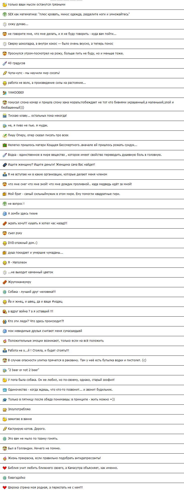 Ребята собирают самые смешные статусы, которые ставят люди в QIP.